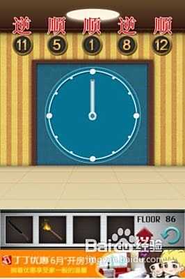 在这关大家会发现,电梯门上方的数字点击之后是会转动的,但是转动的方向有所不同。其实这些就是本关的过关提示啦!11是逆时针转动的、5和1是顺时针转动的、8是逆时针转动的、12是顺时针转动的。