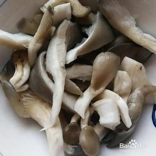 平菇去根撕成小朵,放入沸水中焯1分钟,捞出沥水。