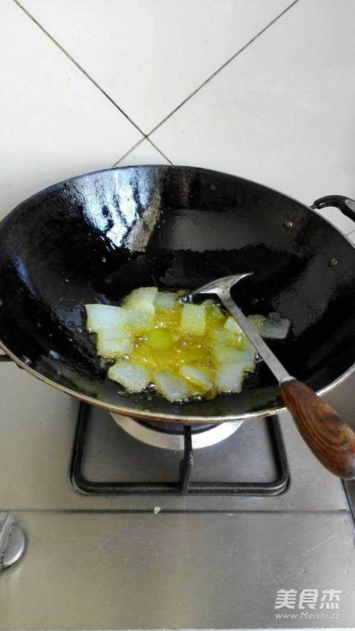 锅内放油,油热后倒入凉粉,中火煎3分钟左右,捞起备用