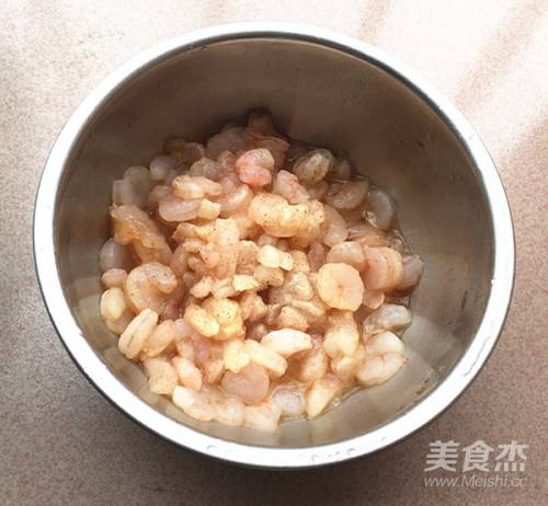 2解冻好的虾仁,清洗干净后加入料酒,白胡椒粉,腌制20分钟。