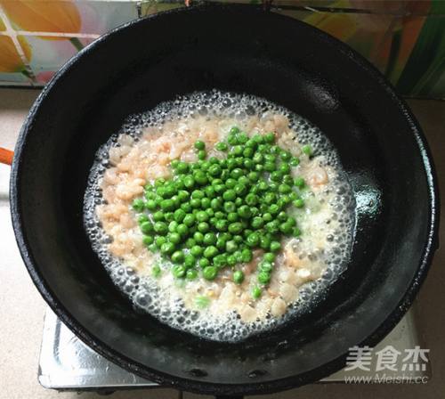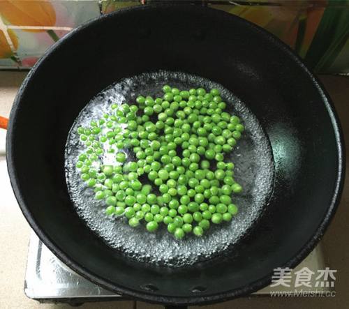 4坐锅烧水,水开后滴几滴油,下碗豆焯水。