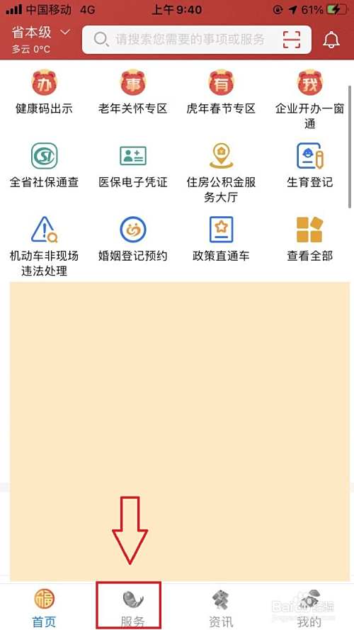 2.第二步我们点击爱山东主界面中的“服务”选项。