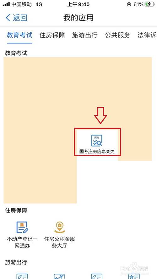 3.最后,我们点击教育考试中的“国考注册信息变更”选项即可。