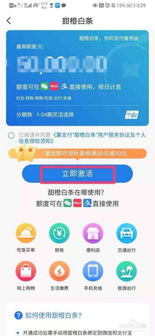 如何在手机翼支付里激活甜橙白条?下面给大家介绍一下。