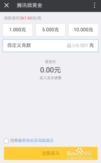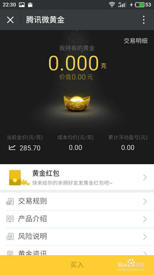 接着就可以看到当前的金价以及一些说明,然后点击下面的买入。
