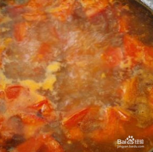 锅中倒点油加热,倒入2/3的西红柿煸炒出汁