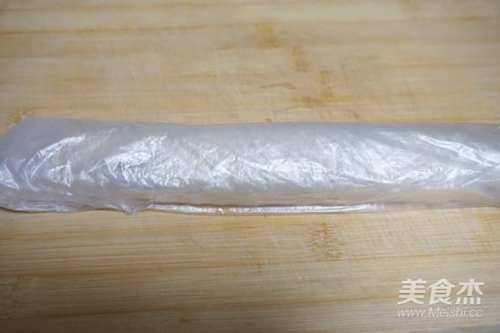 5滚好后用保鲜膜或保鲜袋装好,放入冰箱冷冻3小时以上。3小时的时候,其实面团还是有些软,如果不急,是可以冷冻6小时,这样比较好切。
