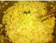 加入适量的盐,半个鸡蛋,因为水分太多,加入是适量的面粉,顺着一个方向拌匀。