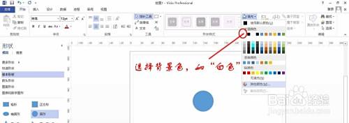 在使用visio2013的时候,我们直接在右侧基本图形中选择圆或椭圆等直接拉出来后,会出现一些背景,同时,在某些编辑后的visio图中,开始就设置了背景,那么如何更换呢?