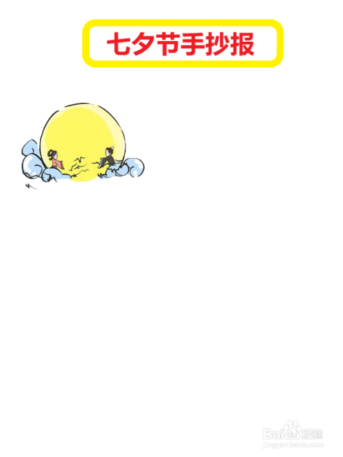 第三步,在左上角画圆月和牛郎织女的简笔画,用来烘托气氛。