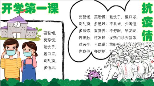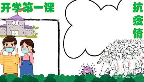 首先,我们要写上手抄报主题“开学第一课,抗疫情”