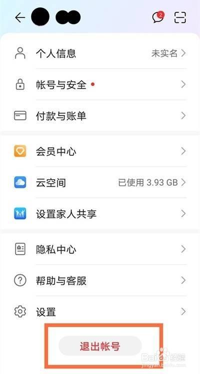 进入后滑动至页面最底部,点击【退出账号】,退出华为账号后即可关闭云空间。