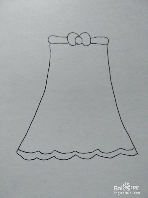 接下来画出左右两条弧线为裙身。裙身的长度可以根据自己的喜好来定。