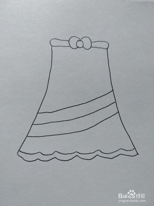 最后在裙身偏下一些,画出3条斜着的弧线,这样一条漂亮又简单的裙子就画好了。