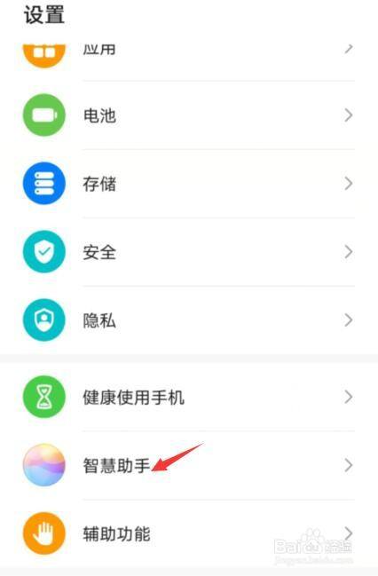打开手机设置,点击智慧助手;