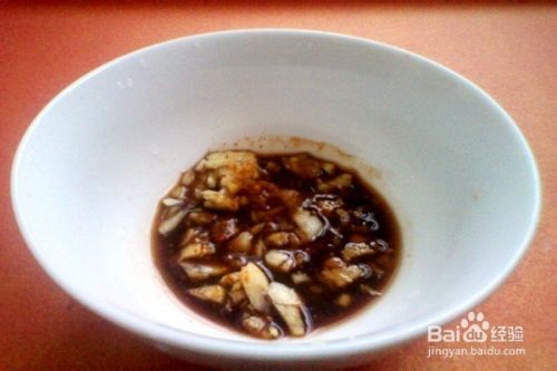在碗中加入醋1勺,南德1勺,盐1/3勺,香油少许,做成调料,