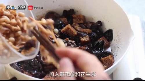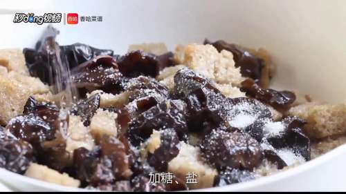 7加糖、盐、料酒、老抽、生抽,翻炒上色加泡香菇的水。