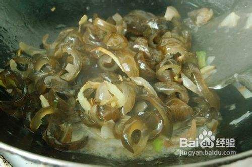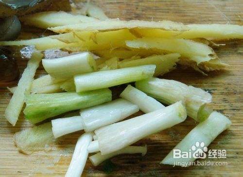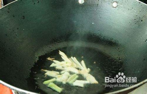 炒锅放适量油,油温烧至5成热,放入葱白跟姜丝煸一下