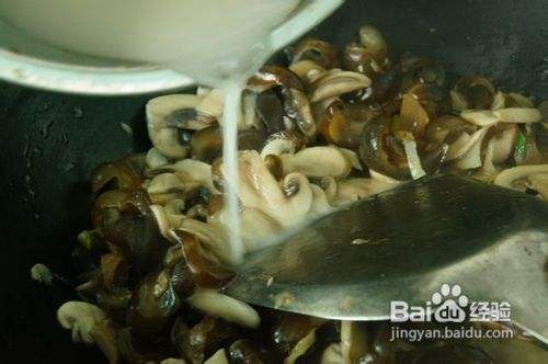 蘑菇都变软之后放入水淀粉勾芡,并煮一分钟