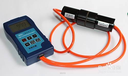 从仪器箱里取出透光率仪,标准玻璃片,并装上电池