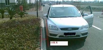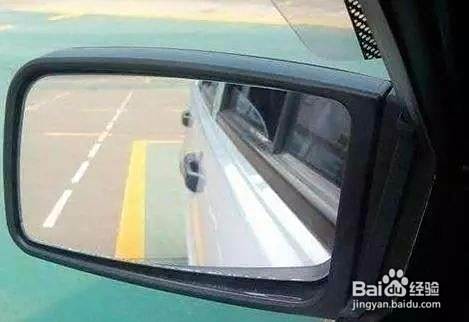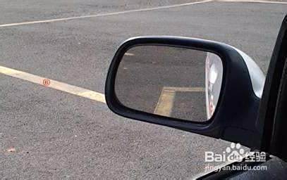 第一步,首先通过倒车镜来观察车身与地面上的实线是否平行。