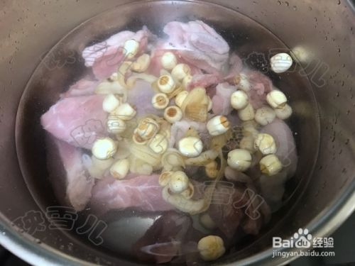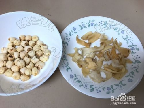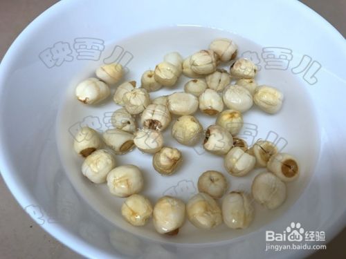把莲子用清水浸泡片刻,泡软后取出莲子心。