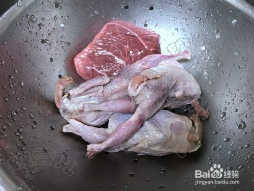 鹌鹑去除内脏洗干净,加一块瘦肉。