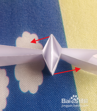 最后,先将中间沿折痕捏成凸起,两边再沿折痕向中间推。