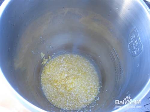 玉米渣放入豆浆机的桶里。