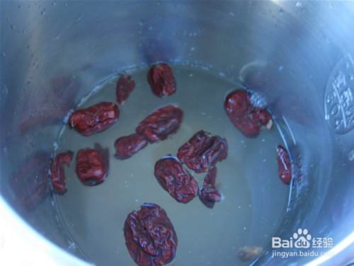 大枣放入豆浆机的桶里。