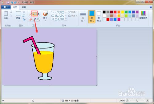 用【曲线】和【圆形】画上一个椭圆和曲线,构成冷饮的液体,注意要使用黄色。