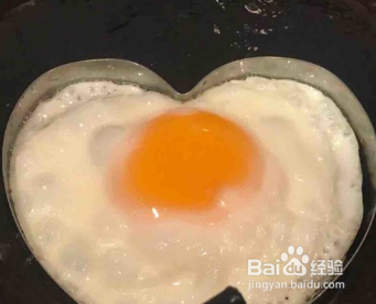 锅中倒入适量底油加热摆入心形模具打入鸡蛋