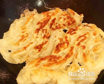 手抓饼煎至两面金黄色酥嫩即可出锅