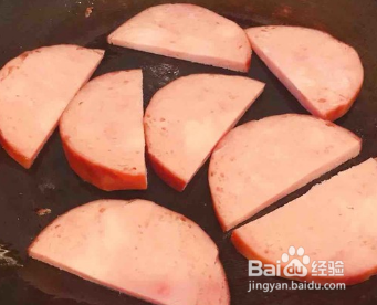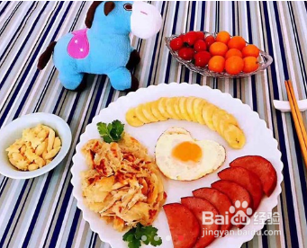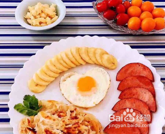 煎好的手抓饼、鸡蛋、火腿还有切好的香蕉摆入盘中