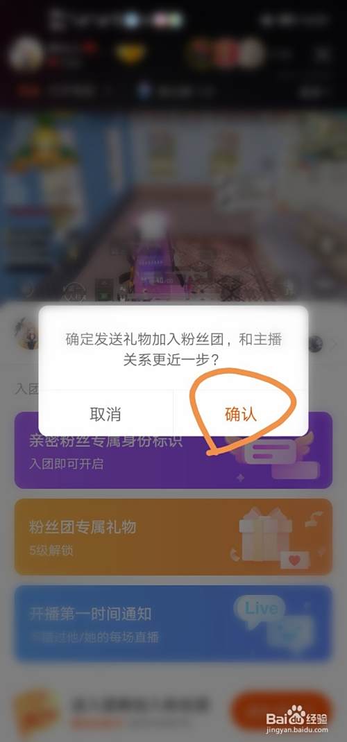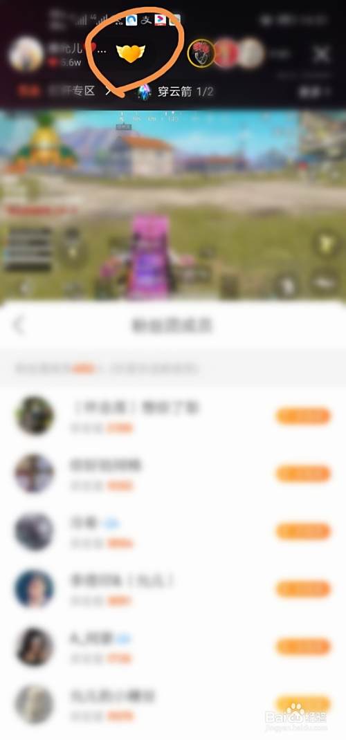 关注后出现“金色翅膀爱心”图标,点击图标,出现粉丝团界面。