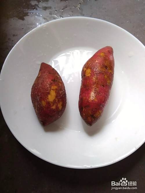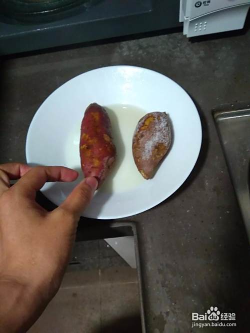 把红薯放在陶瓷盘里,里面发一点水,防止太干。