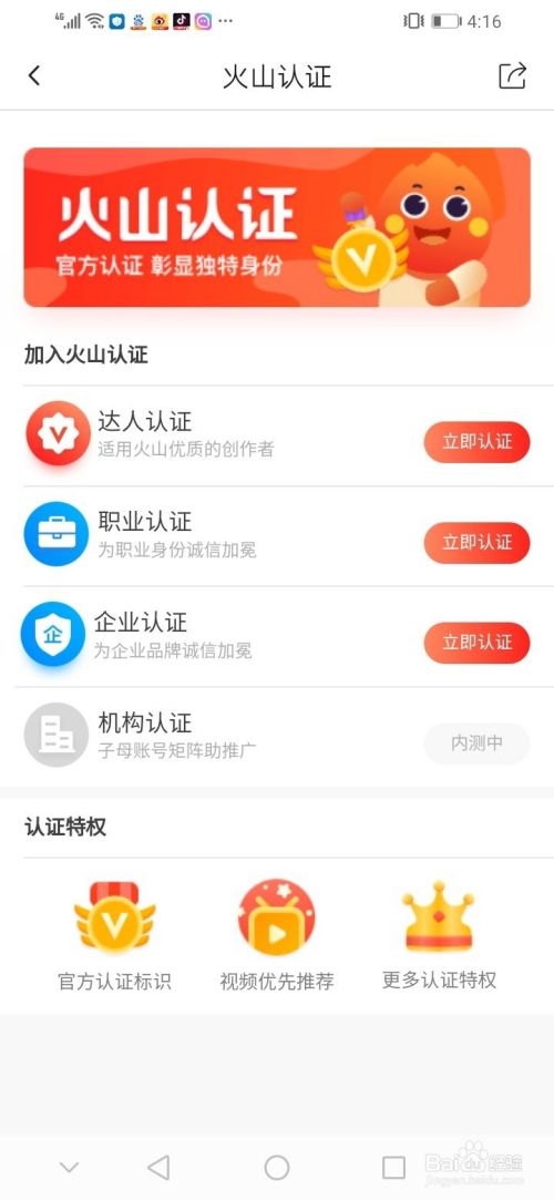 在认证信息里,有火山认证和实名认证两种,我们选择第一个火山认证,点击“去认证"。