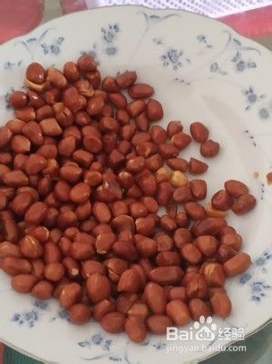 冷锅倒入两勺油,放入花生小火煸炒,这过程有点长,需要耐心,铲要不断翻炒,等到花生炒出香味,噼啪响就可以了。
