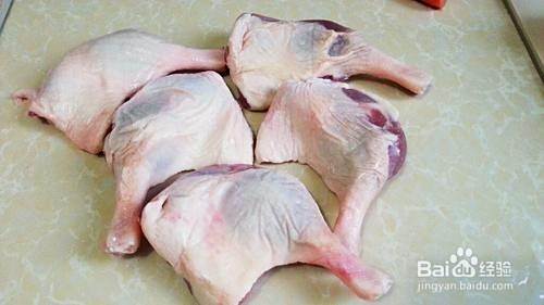 在锅中倒入少许油,鸭腿沥干水分,皮朝下煎