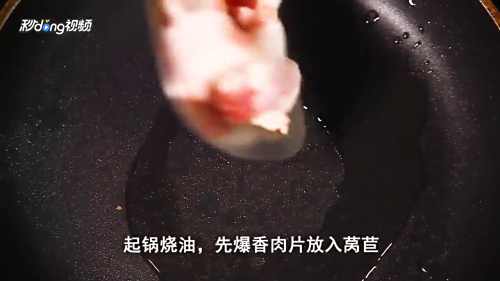 起锅烧油,爆香肉片后放入莴苣,翻炒至熟,加盐调味。