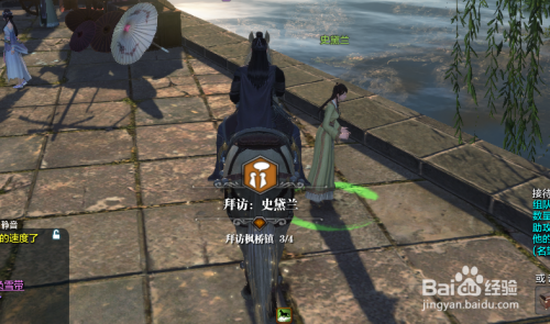 按键盘M打开地图在上方输入坐标,点击放大镜,就能直接到达,直接对话完成(顺便到前面捡取捡趣的“古镇木伞”完成第一个捡取)