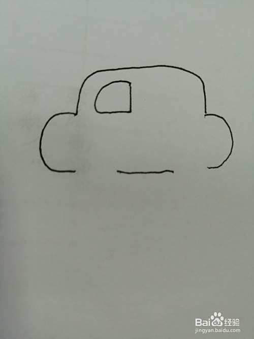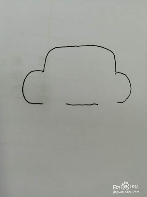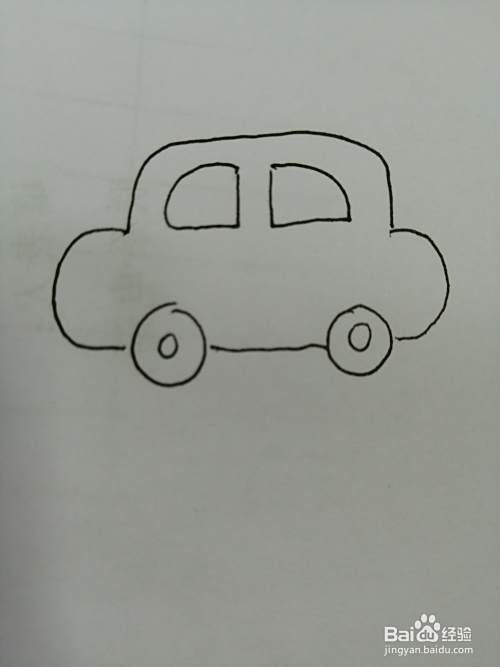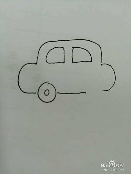 第三步,接着在车身下面画出两个圆圆的车轮子。