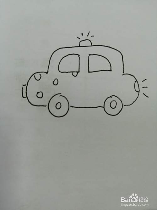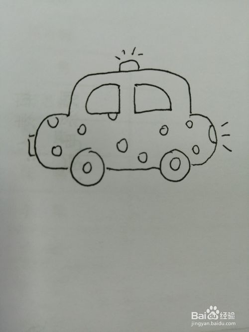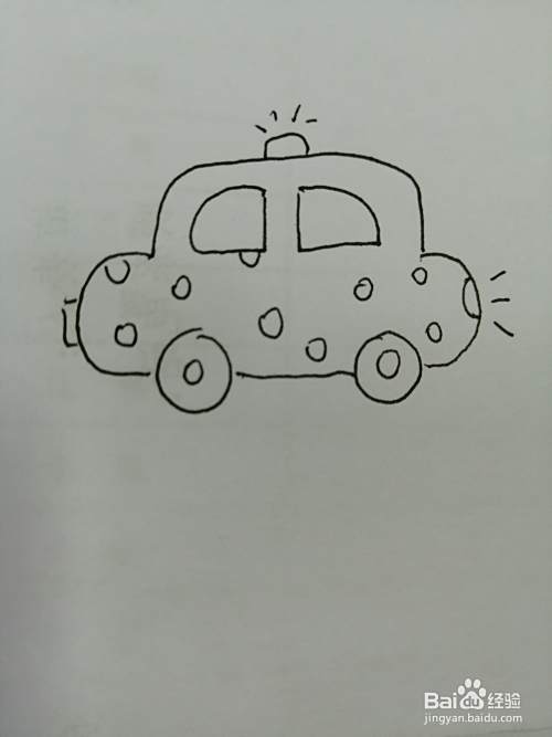 第六步,然后在可爱的小警车的车身上面画出几个小圆形。