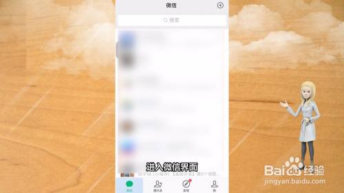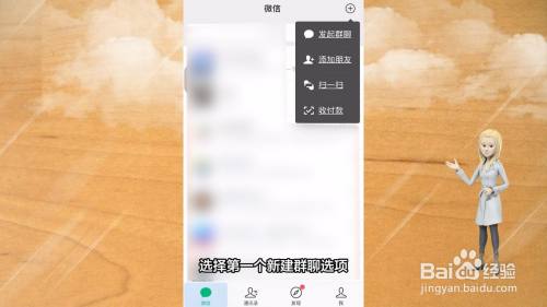 进入微信界面,在屏幕的右上角点击+号,弹出功能菜单。