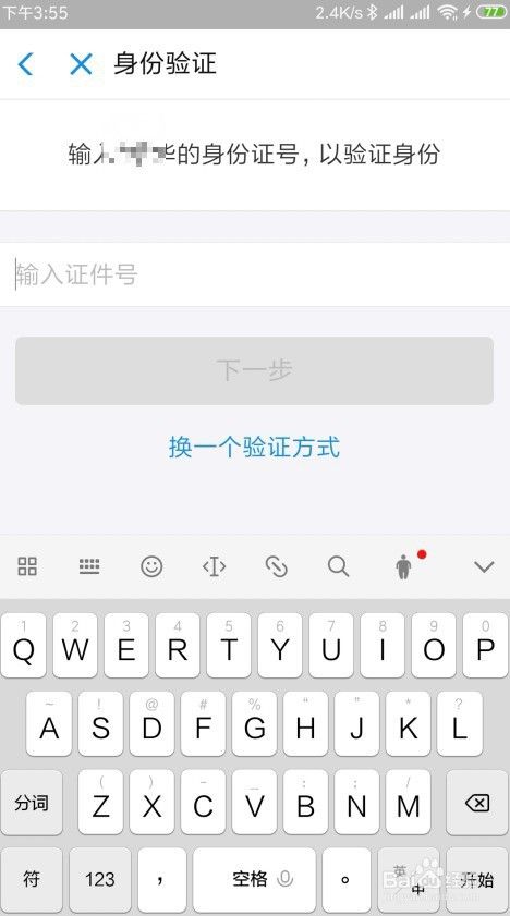 接着在打开的身份验证的页面中输入我们的身份证号后点击下一步按钮。