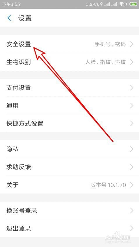 然后在打开的设置页面中,我们点击“安全设置”的菜单项。