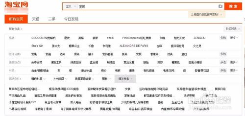 手淘首页流量的来源大多数来自淘宝大数据的抓取推荐,为了能够让淘宝推荐自己的产品,类目相关性要做到正确。我们以发饰这个小类目为例,在发布产品页面可以看到发饰有近10个相关的小类目,我们依次点击发现第二个类目才是正确的选项,这点在淘宝搜索端也可以得到印证。