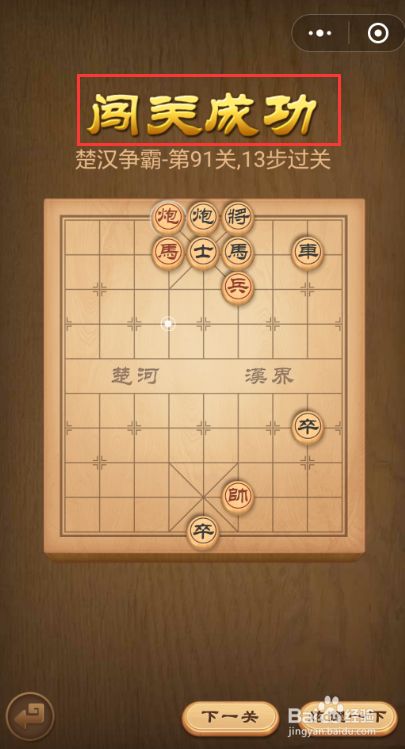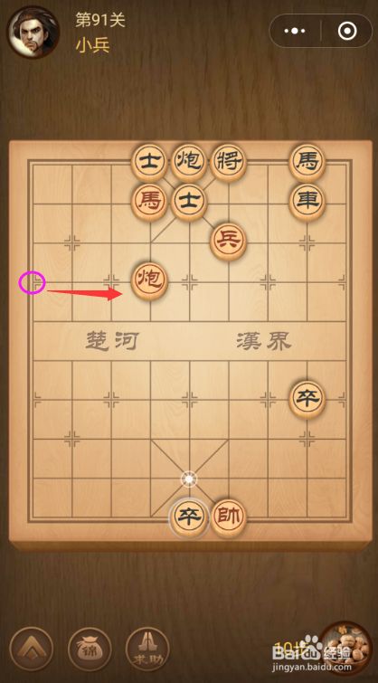微信小游戏中国象棋楚汉争霸第91关的初始界面如下,黑发明显处于优势,一着即可取胜;红方要想闯关,必须想法先拖住黑车,然后快速取胜。