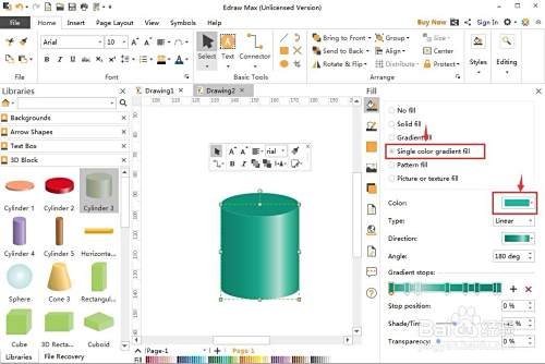 点击单色渐变填充,选择需要的颜色,如绿色;