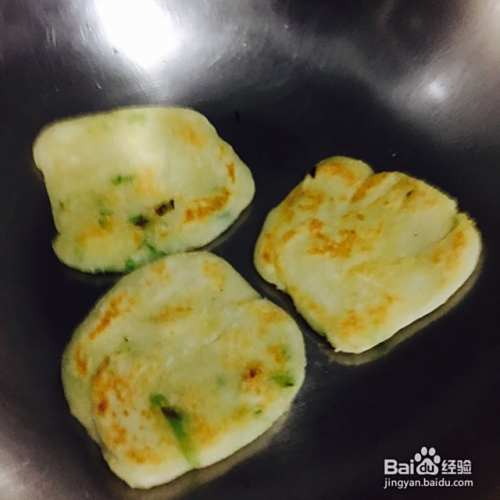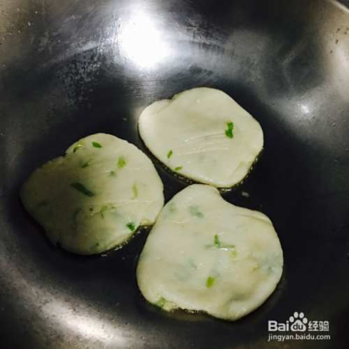 热好后就可以下锅了!小火哦~大火容易糊~因为饼小~完全不用平底锅~正常炒勺就可以解决~